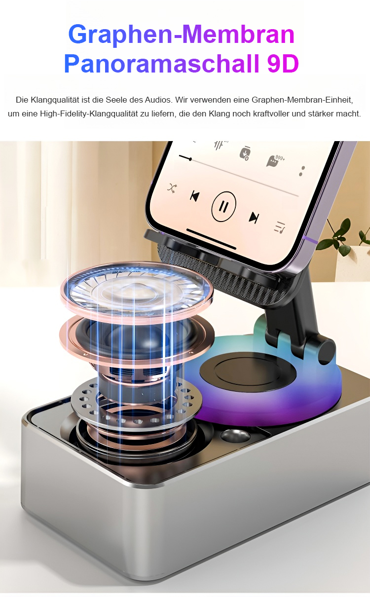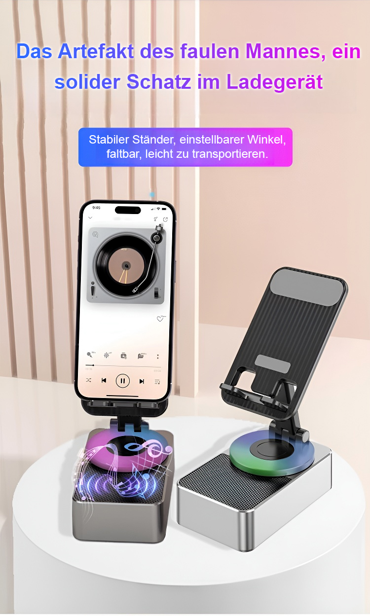 Alles in Einem: Ständer, Bluetooth-Lautsprecher und Powerbank