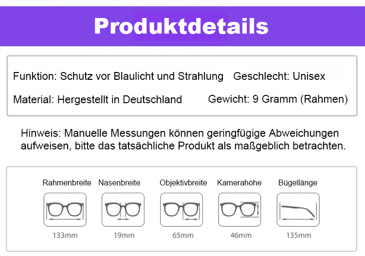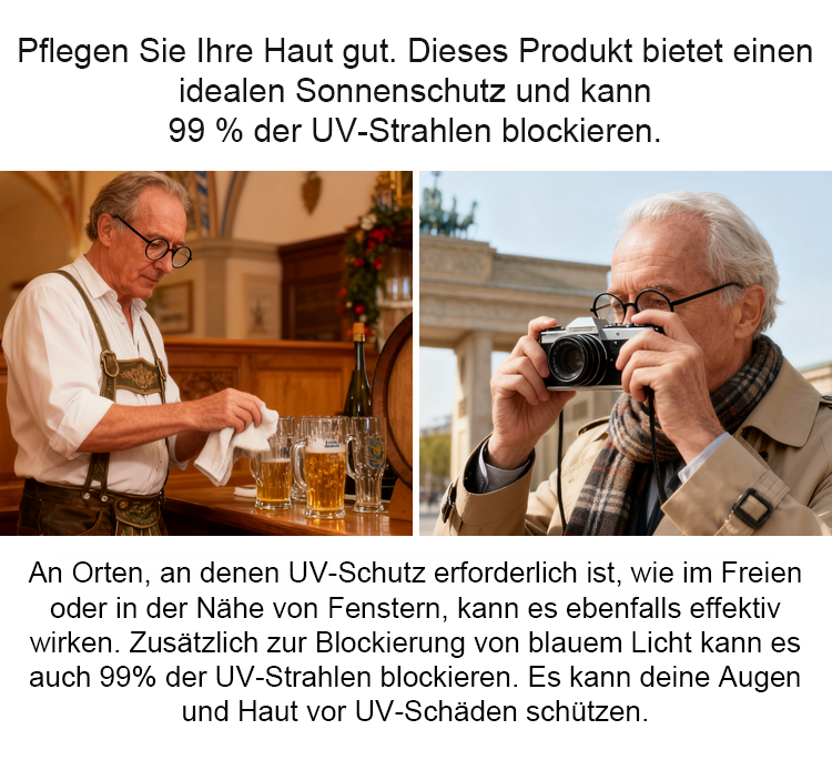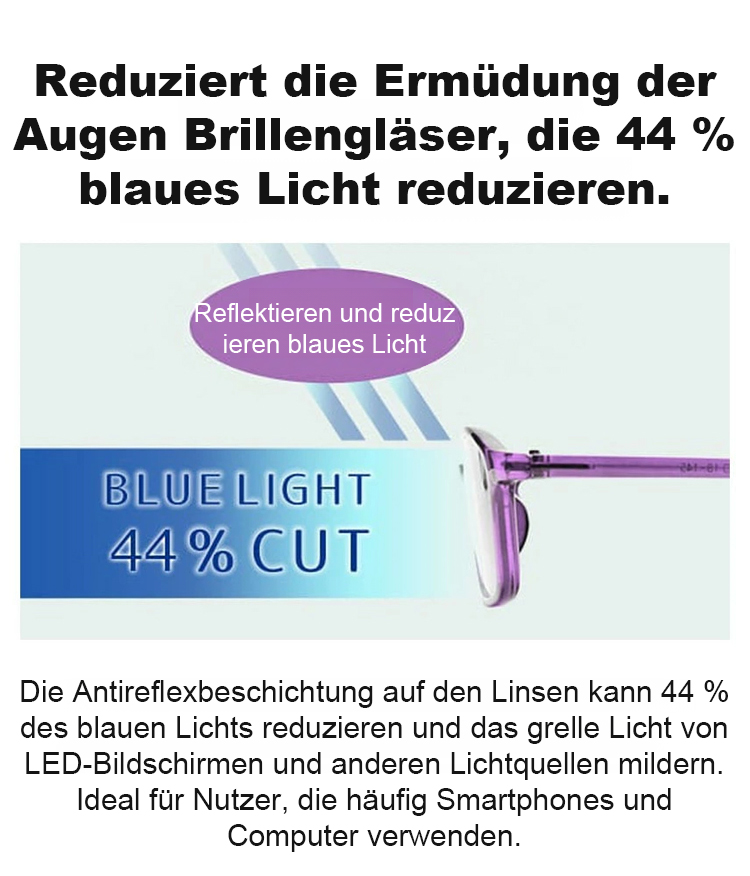 Wirksam 99,9% der Blauestrahlung blockieren – Glanzreduktion & Müdigkeitlinderung, geeignet für Lesen, Fahren, Laufen und andere Lebenssituationen!